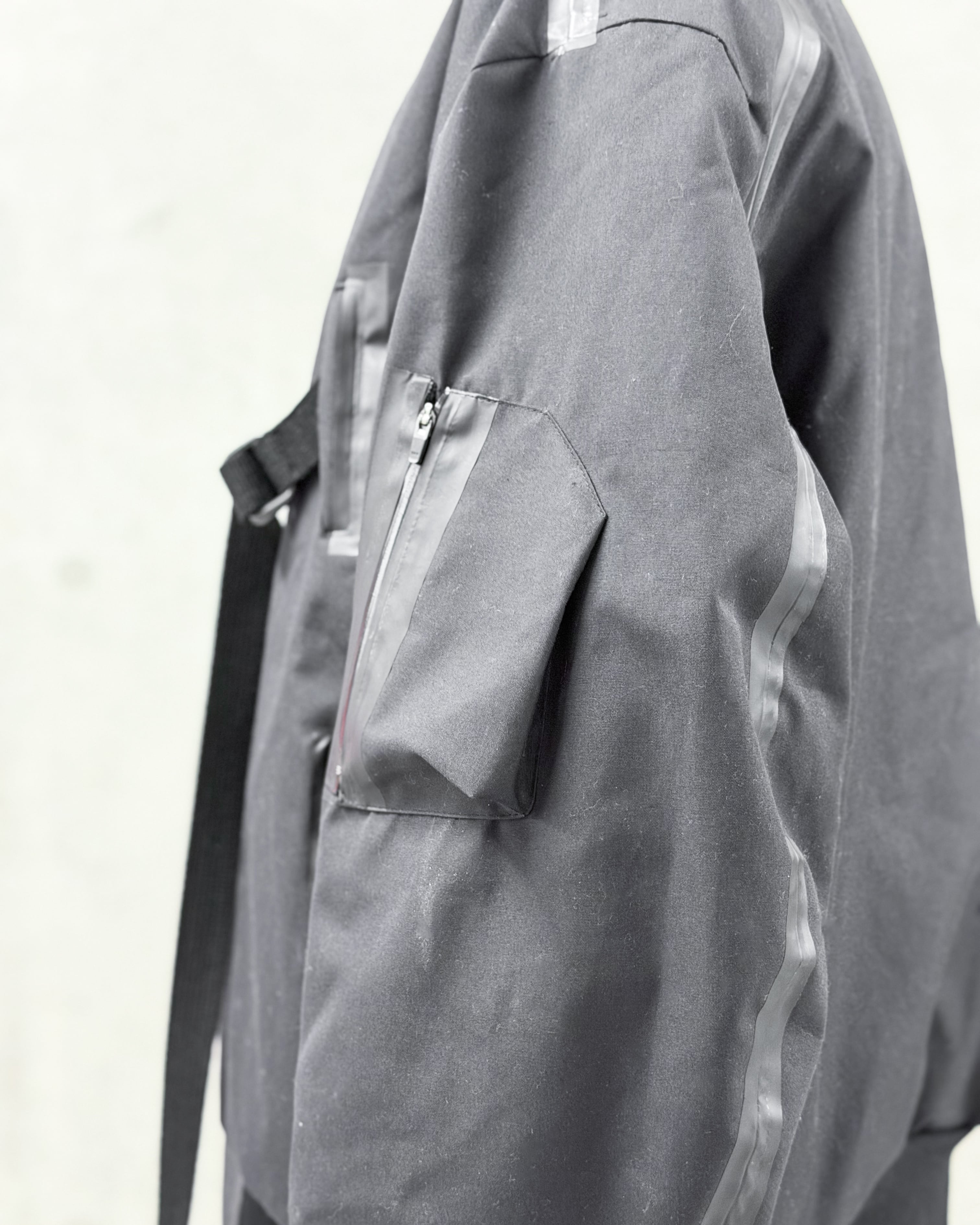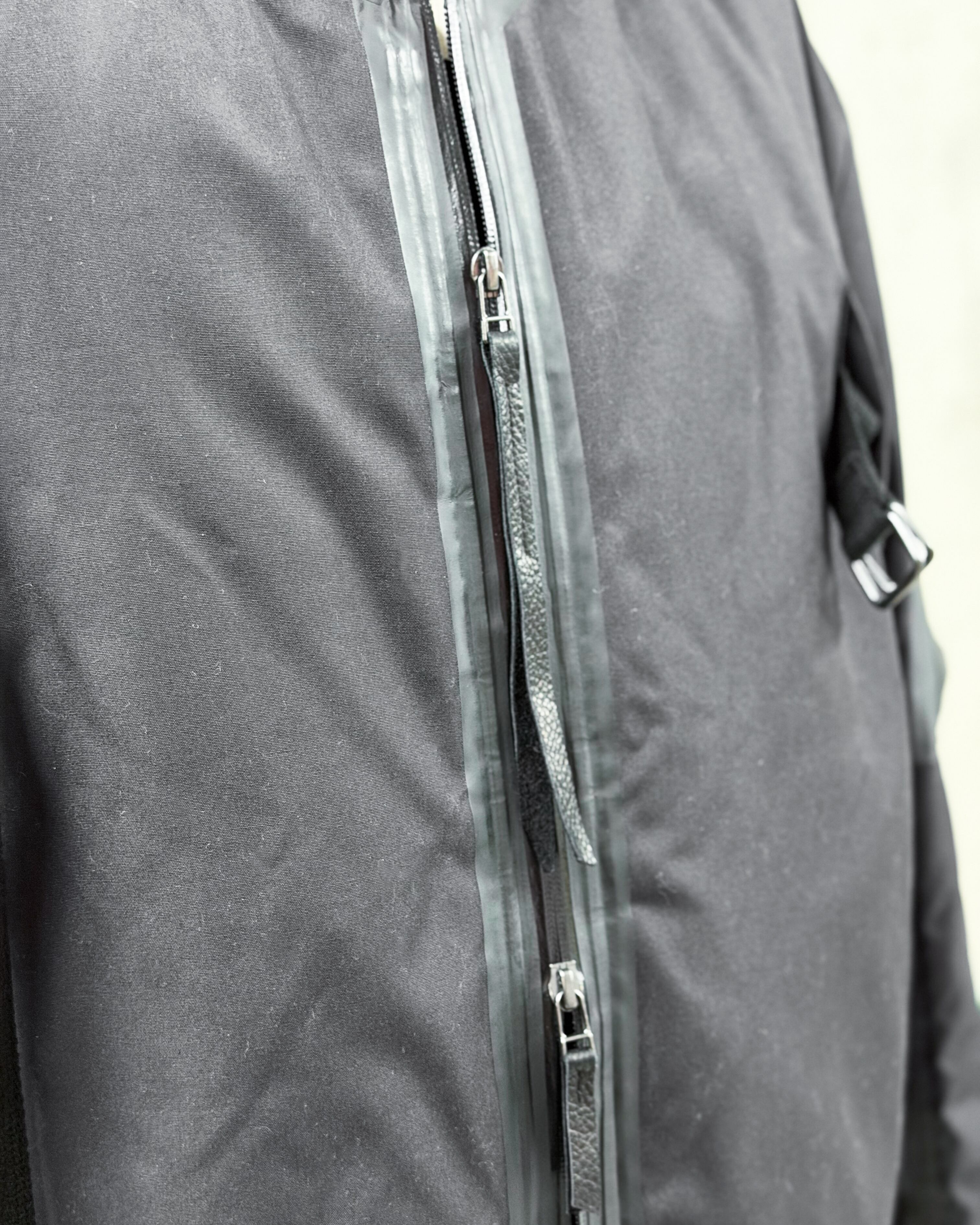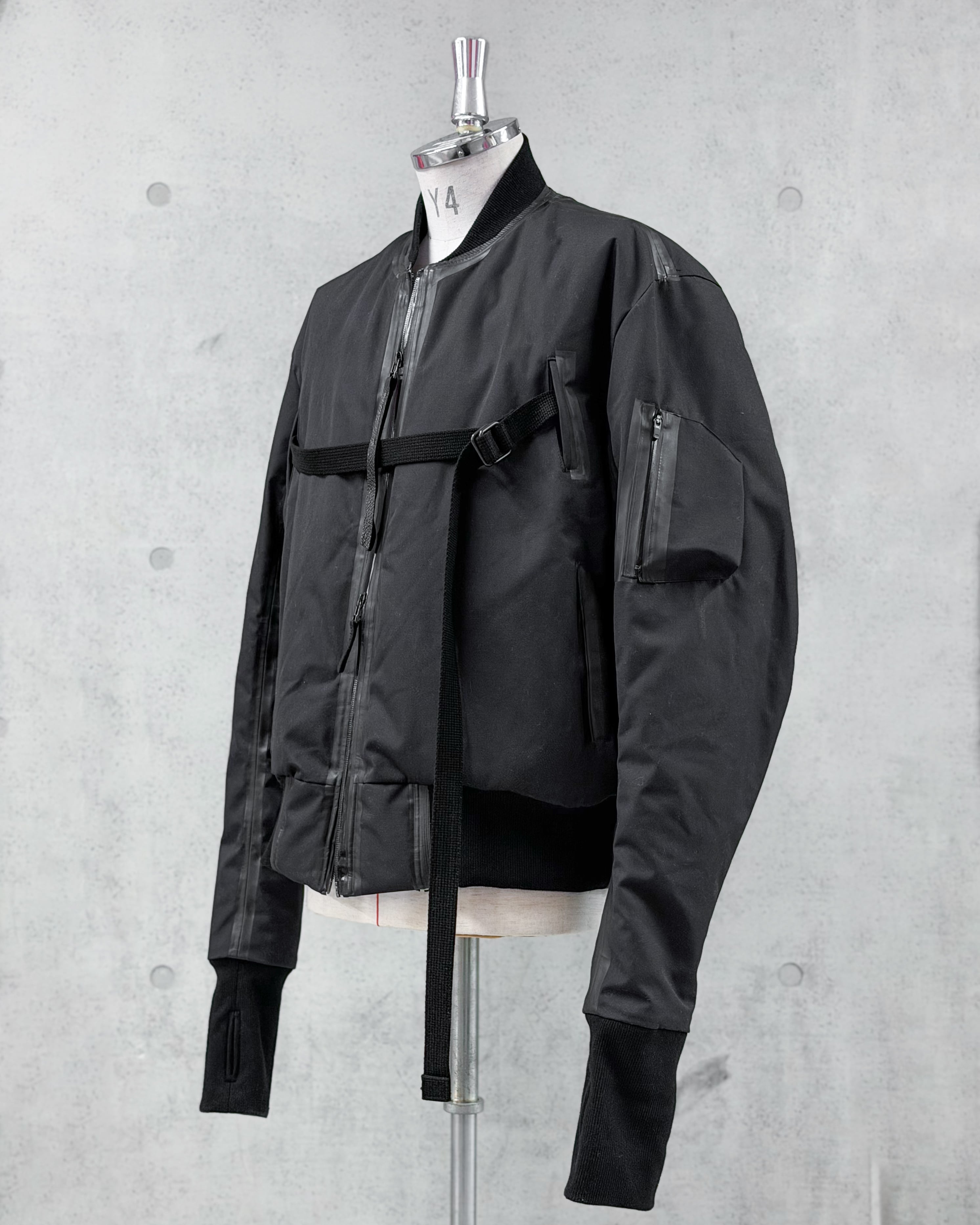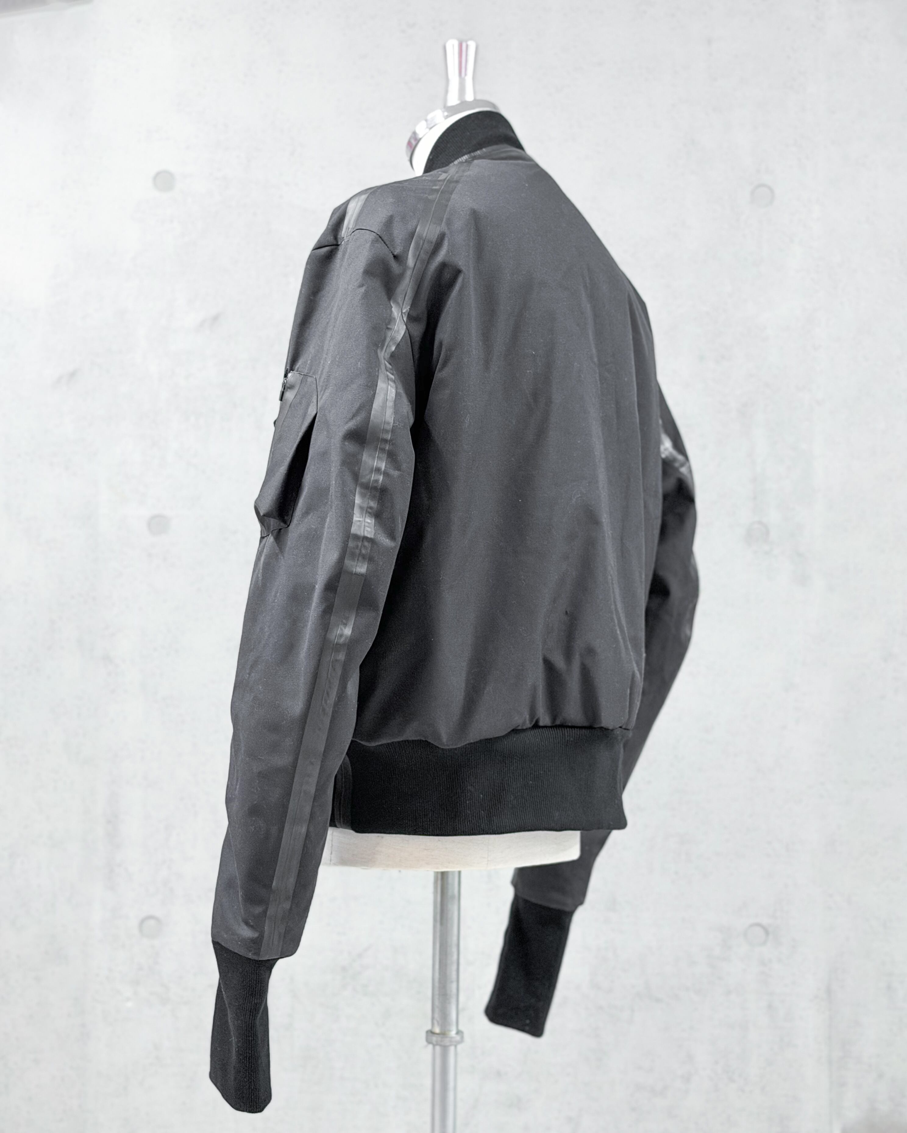 止水ファスナーとシームテープが施されたMA-1タイプのジャケット。
