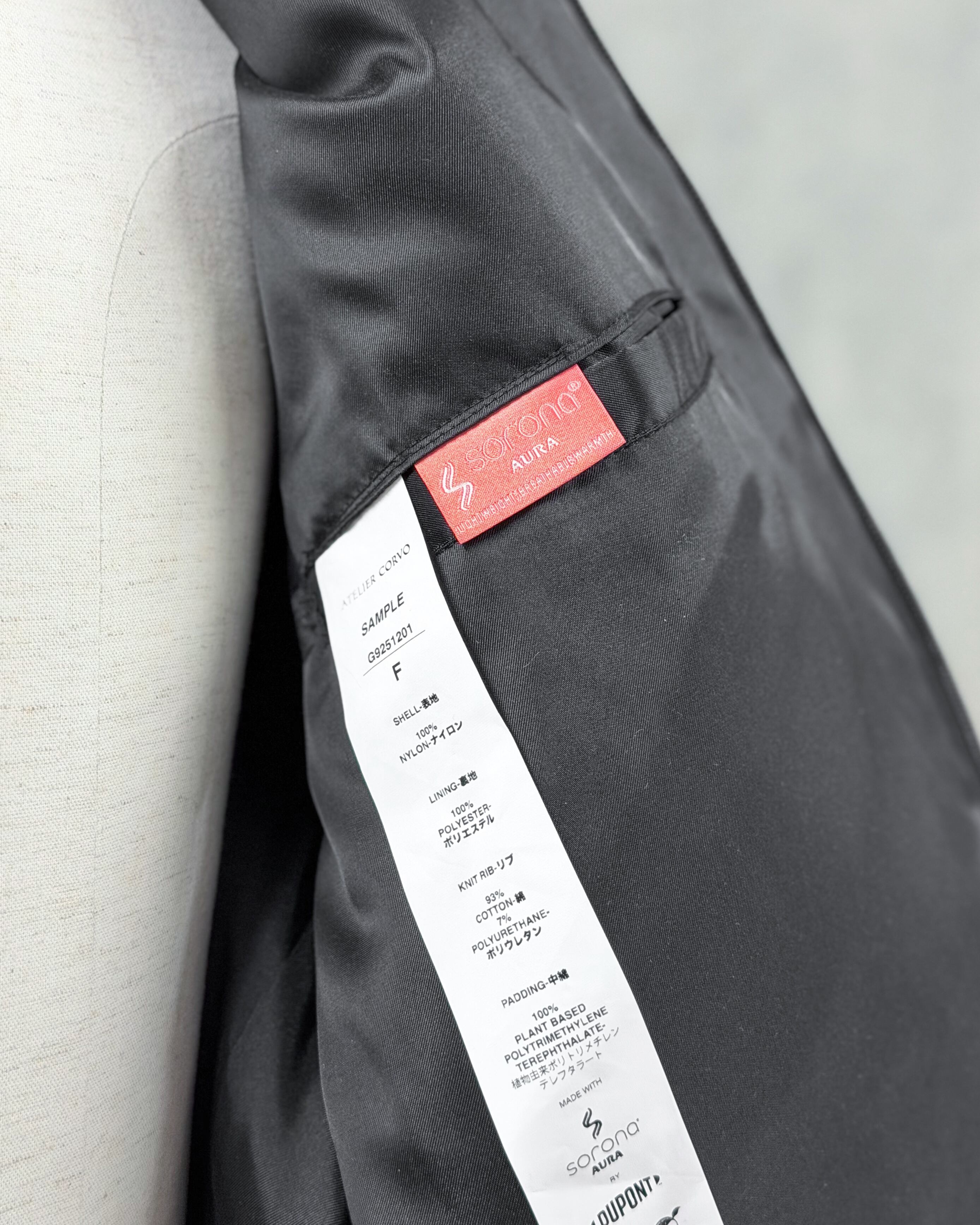 中綿には植物由来素材のDUPONT社SORONAを使用しており、軽量で保温性に優れています。環境に配慮しながら、快適な着心地を実現。